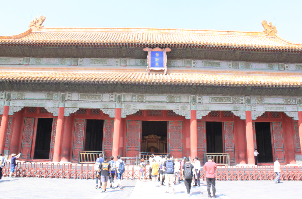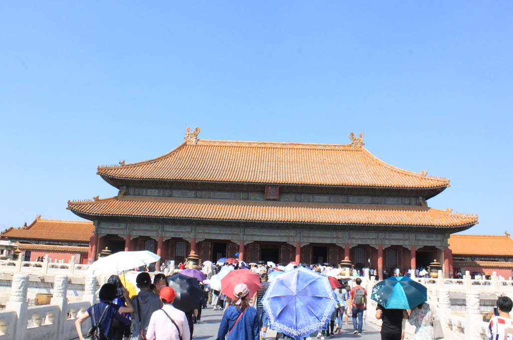 故宫有一种独特的威严、令人震撼的美,然而这又是一种让你感到亲切的美.故宫给人的是尊贵的美.因为参观的过程中,我们大多都只能在宫殿的外面参观,而不能进入其中,所以我也观察到故宫的门窗十分精美,据说站在高山上看故宫,根本看不到一个窗户,是为了防止刺客找路,可见紫禁城的防守十分的严密.