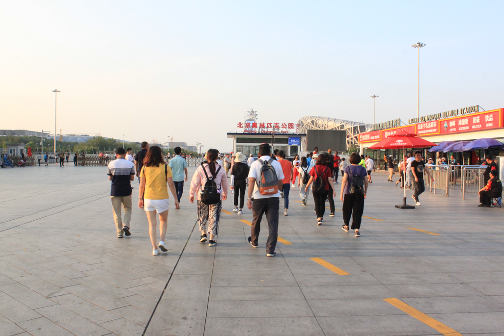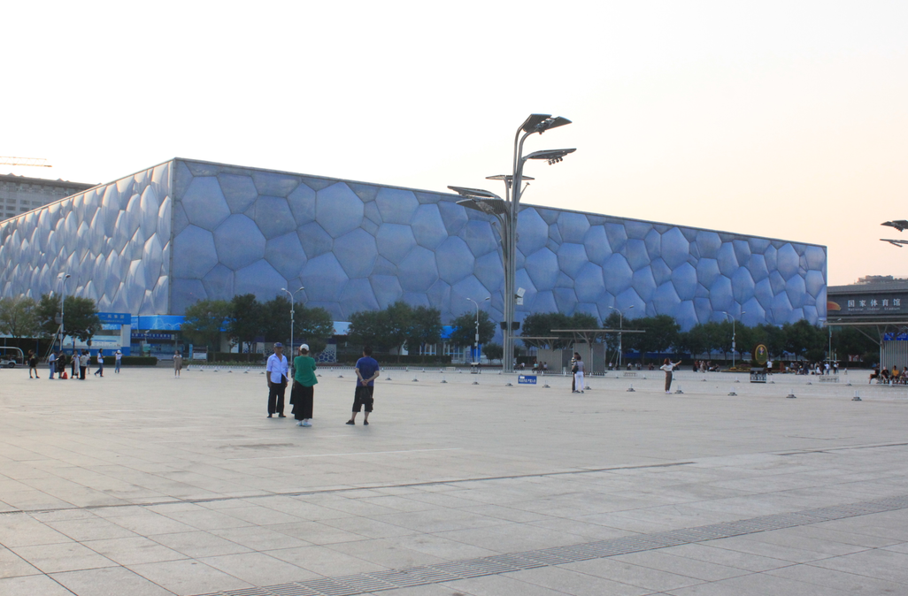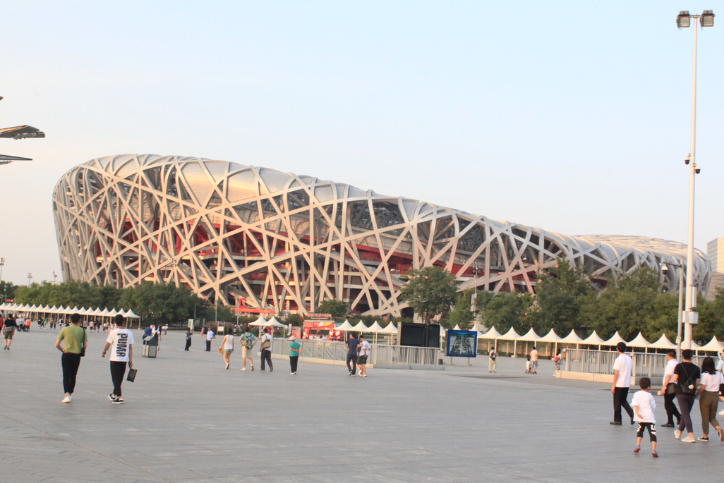 爬完长城,感受了历史劳动人民的智慧后,我们又来到奥林匹克花园,充分见证了现代建筑的力量。椭圆形的鸟巢边缘平滑,放形的水立方菱角分明,雄壮温馨的鸟巢,优雅梦幻的水立方,紧密呼应,对比强烈,走近他们,仿佛还能感受到空气中弥漫的奥运选手们挥洒的汗水的味道和观众们热情的欢呼。