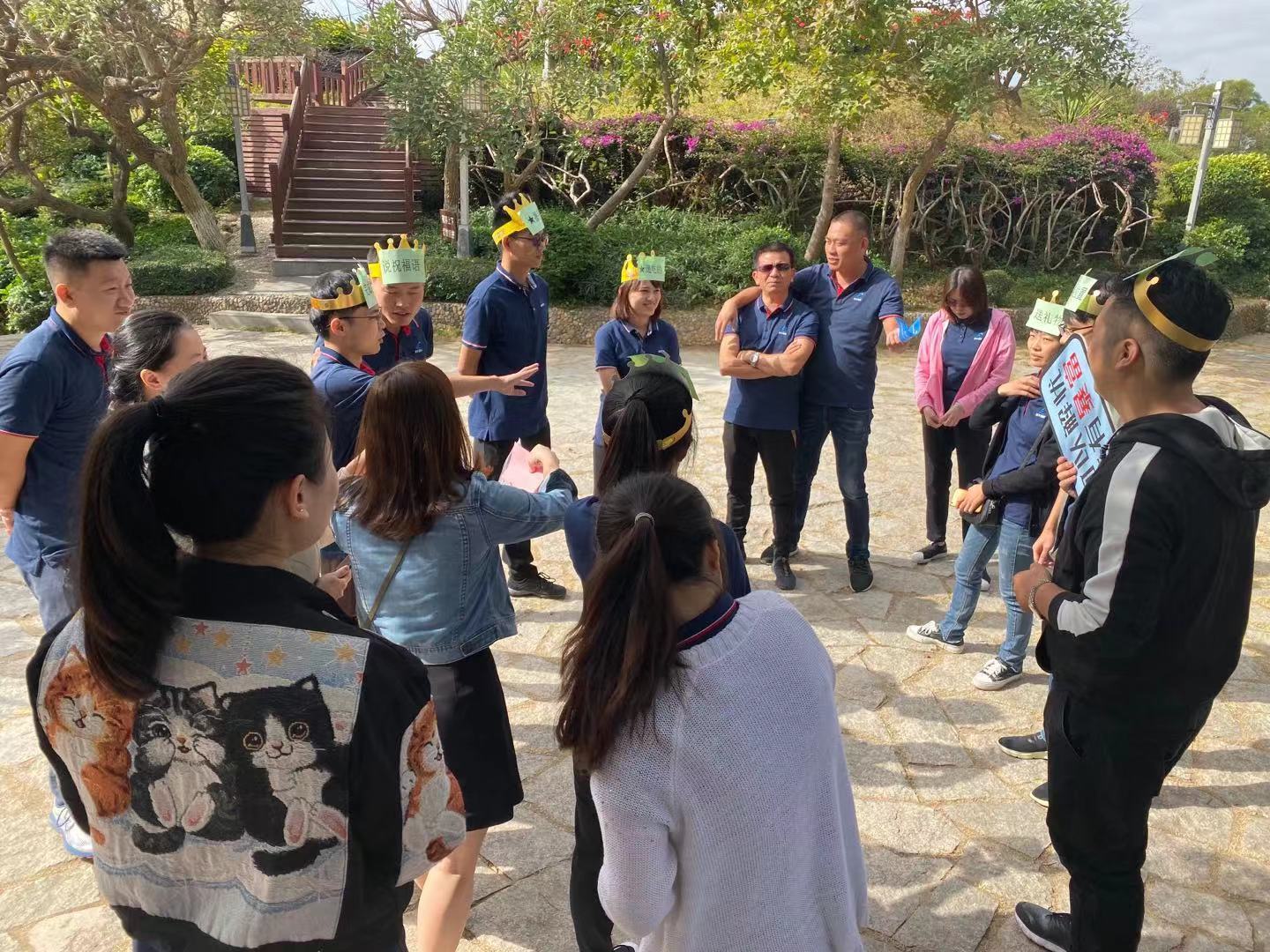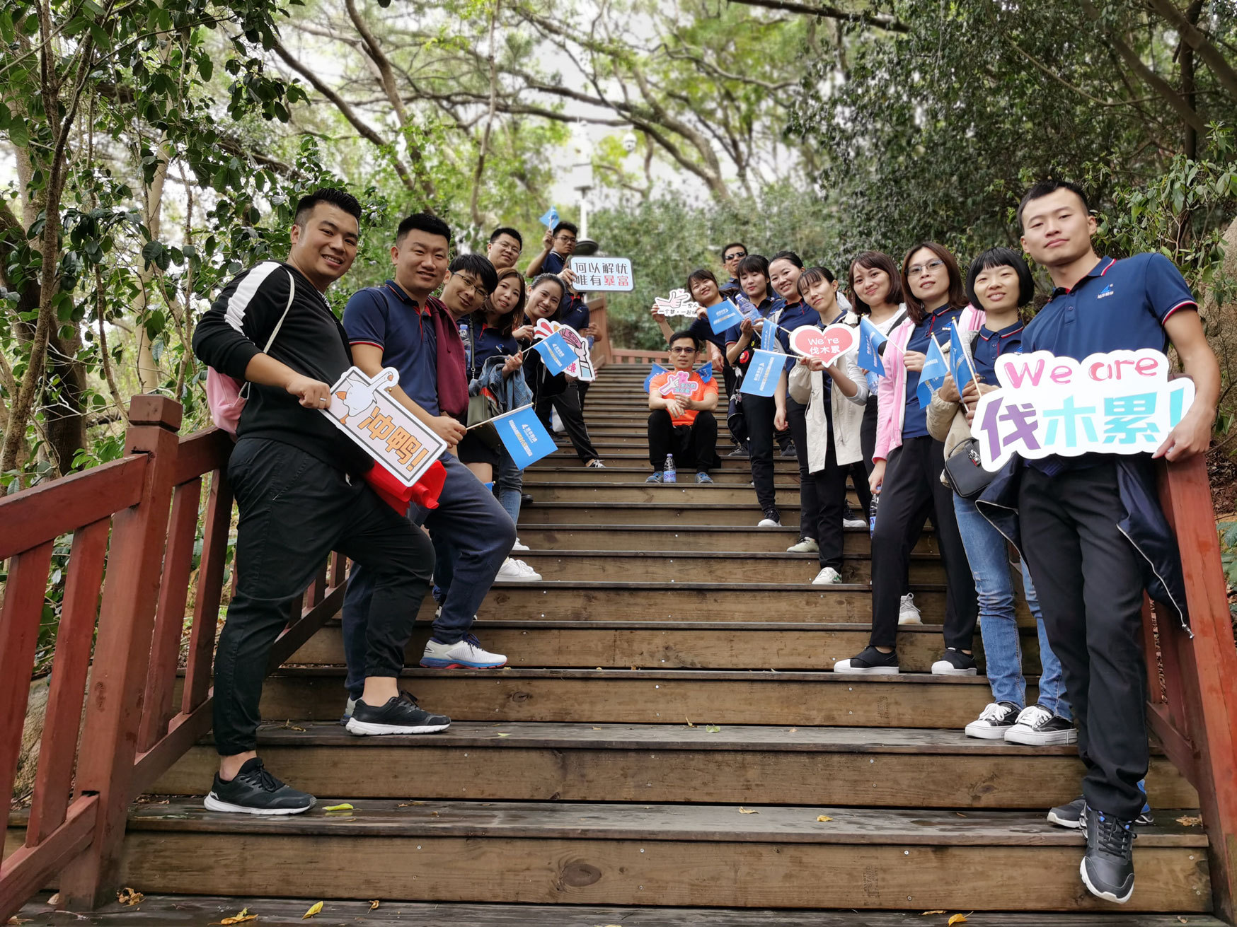 早上9点,所有小伙伴在山脚下集合,带着对这尊英雄雕塑油然而生的敬仰,我们迎着朝阳出发了。踩着石梯在茂密的丛林中穿山而上,一路走走停停,谈笑风生,顾不得腰酸腿软,汗流满面,兴致勃勃爬到了山顶。 休憩片刻后,便开始了我们精彩的游戏环节。两个分队小伙伴在游戏中积极讨论对策以及明确人员分配,各组的队员都为胜利而战,出谋献策,寻求加速胜利的方法。在一次次的欢声笑语中,一次次的脑力与体力较量中,一次次的游戏惩处中,小伙伴们的心灵更进一步的贴近。我们明白,我们不止是战友,更是朋友,是家人。我们一起并肩作战,也一起荣辱与共。