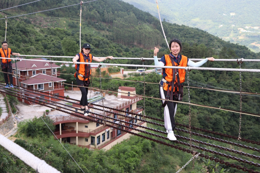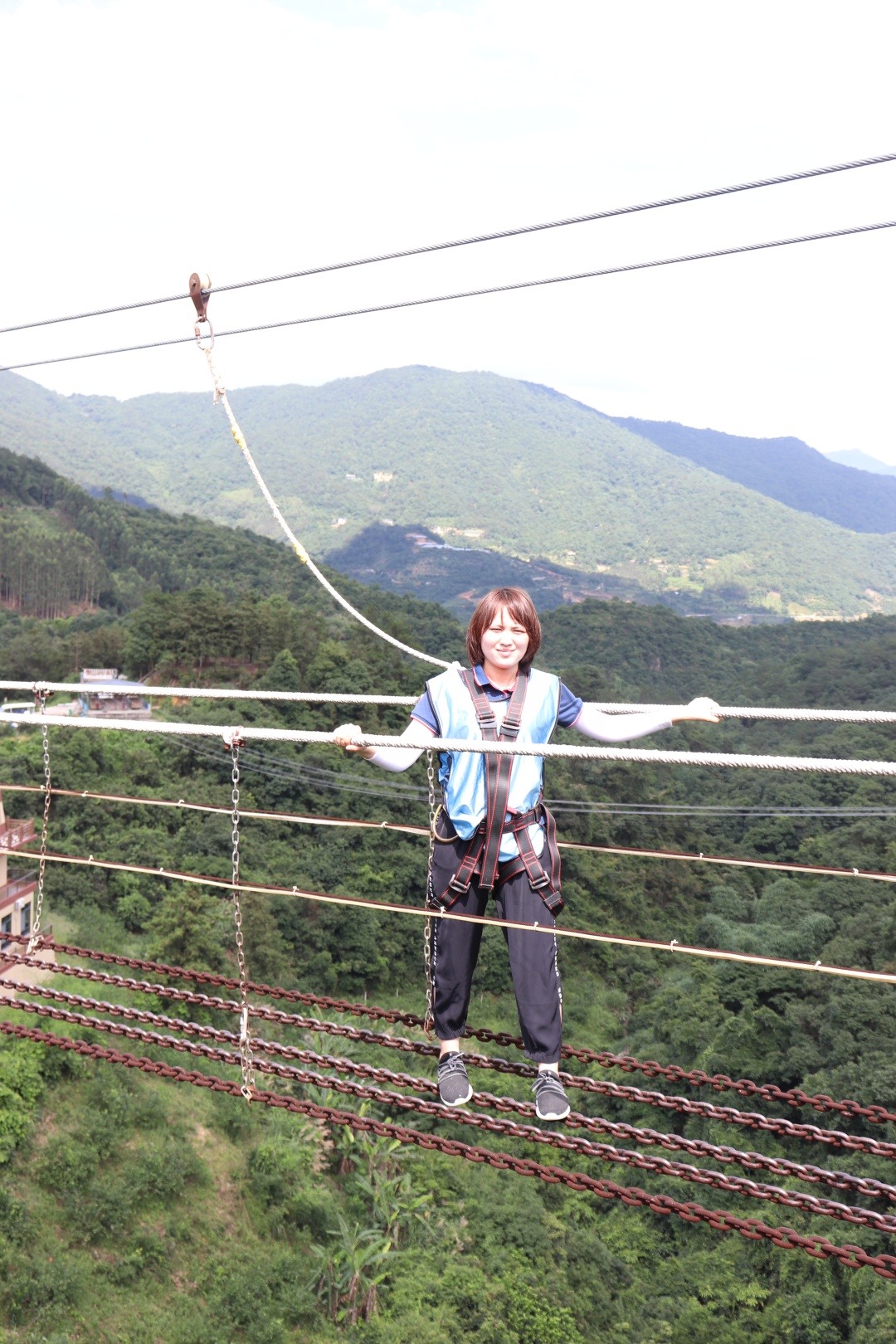 “加油,不要往下看,朝前看,勇敢走过去”,伙伴们温暖的鼓励不绝于耳,发软的双腿突然有了一股神奇的力量,支撑着自己不断向前。