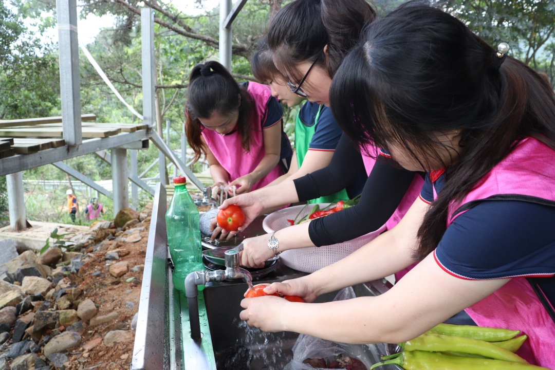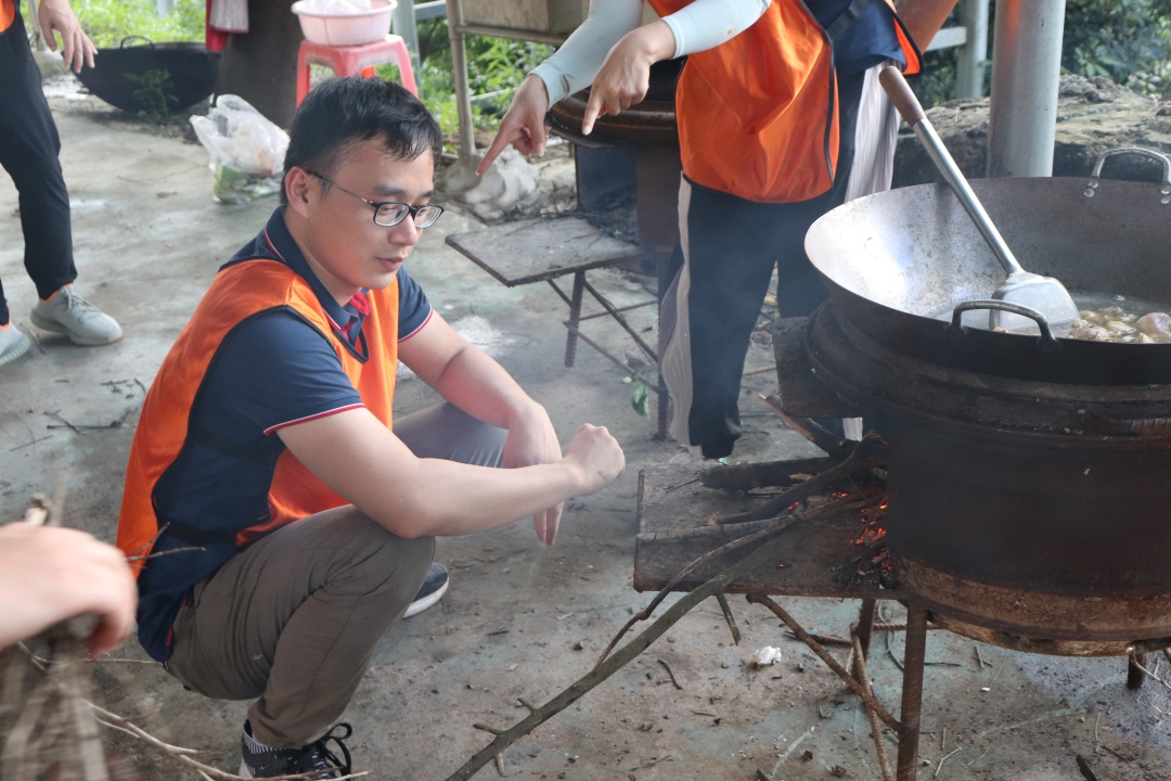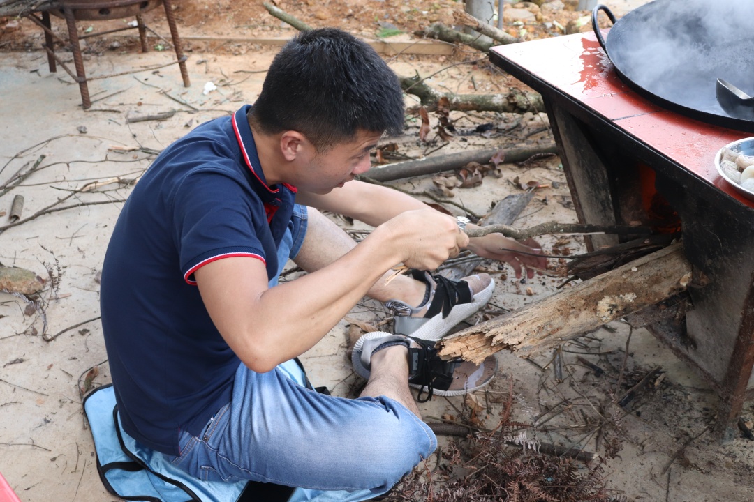 旭丰的小伙伴们不仅上得战场,还进得了厨房。拾柴、生火、洗菜、备料、炒菜、摆盘,一气呵成。吃着这色香味俱全的“满汉全席”,所有人的脸上都洋溢着满足的笑容。